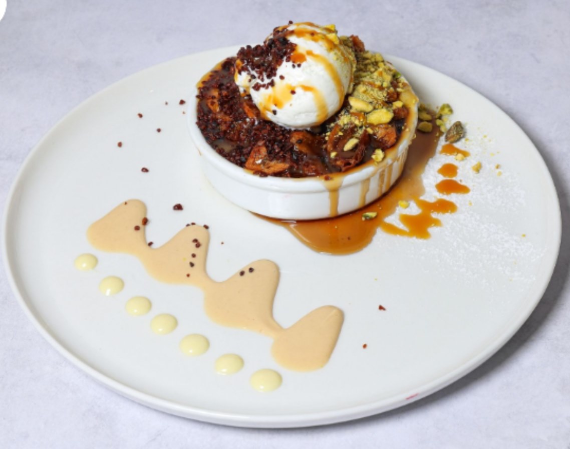 صوصات: شوكوالته، شوكوالته بيضاء، نوتيال، لوتس، فستق حلبيالكعك ساخن يقدم مع البوظة والفانيال والكتسيت