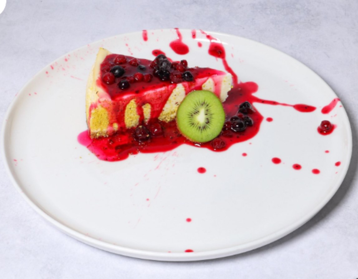 كعكة جبنة مخبوزة مع فواكه برية